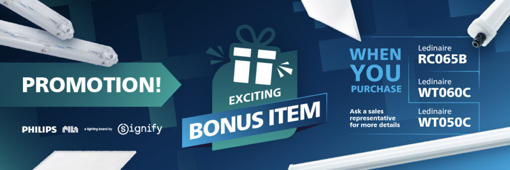 The promotion for Philips Signify products has started 💡 Now when you buy Philips Ledinaire WT060C, Philips Ledinaire WT050C hermetic luminaires and Philips Ledinaire RC065B panels, an attractive freebie inside the package!